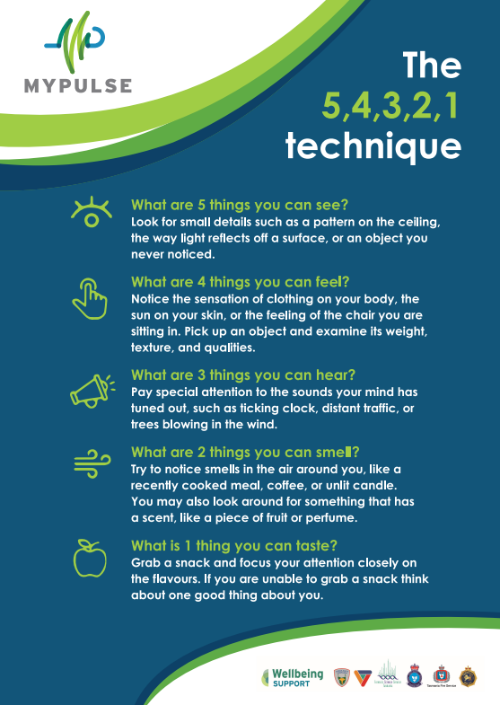 The 5, 4, 3, 2, 1 technique is just one tool you can rely on if you are experiencing high levels of distress. If you are dealing with high levels of stress or anxiety, and you feel you might need help now, please head over to the 'get help now'section.