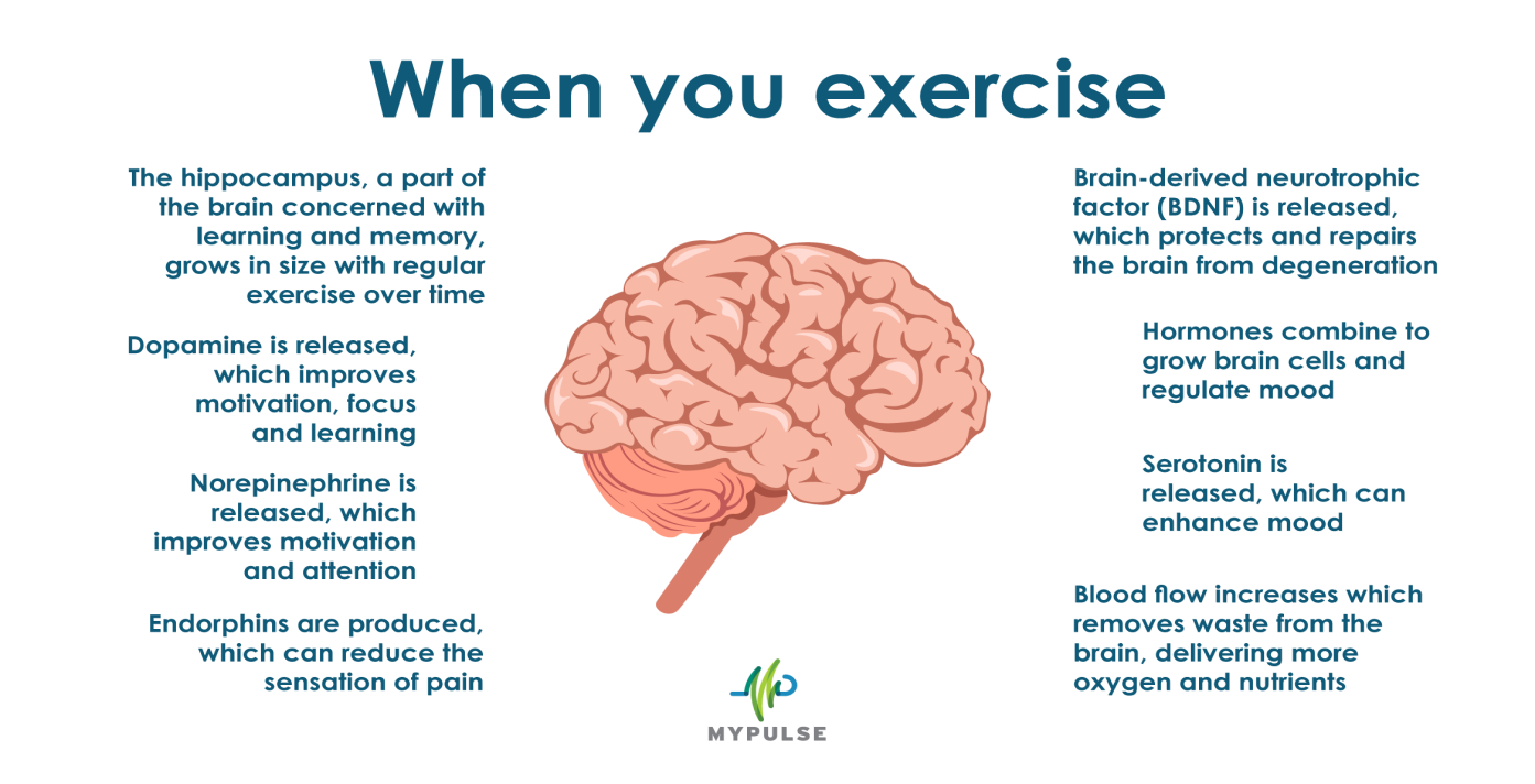 Our hippocampus, the part of the brain responsible for memory and learning, actually grows during regular physical activity – we can keep our brains sharp by getting our hearts pumping and staying active!